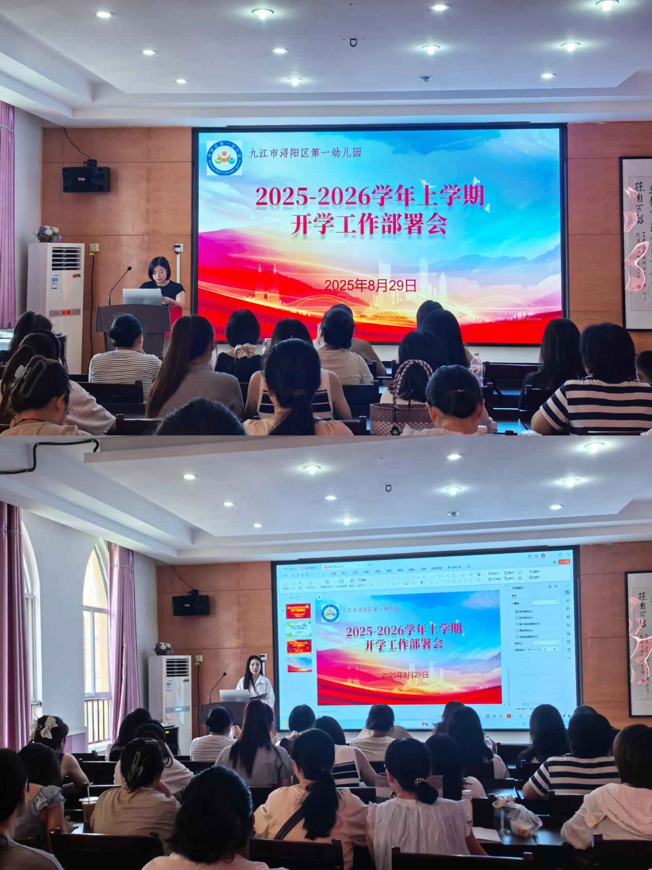 新学期的脚步渐近,为确保开学各项工作平稳有序推进,8月29日,九江市浔阳区第一幼儿园召开了2025—2026年度第一学期开学工作部署会,精心安排各项工作,全力做好常态化安全工作以及开学准备工作,凝心聚力,为新学期的顺利启航筑牢基础。